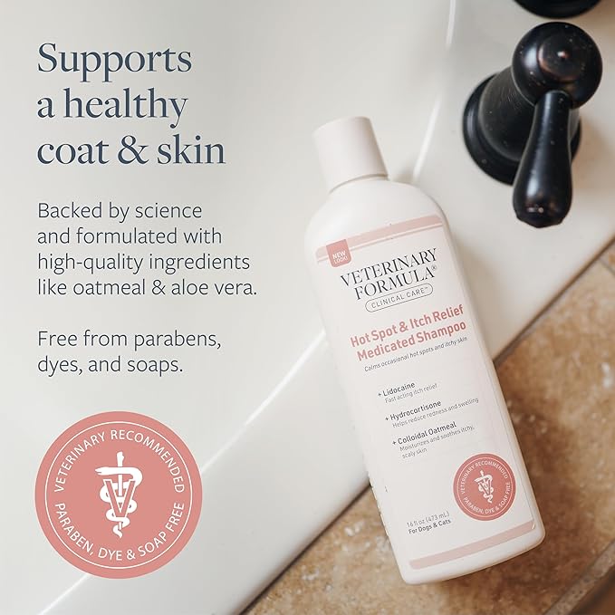 Veterinary Formula Clinical Care Hot Spot & Itch Relief Medicated Shampoo for Dogs and Cats 16 Fl Oz – Helps Alleviate Sensitive Skin, Scratching, and Licking of Coat (2 Pack)