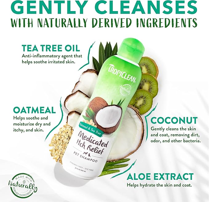 TropiClean Oatmeal Cat & Dog Shampoo for Itchy Skin Relief, Puppy & Kitten Safe, Medicated Tea Tree Oil for Itchy Skin Relief, Made in USA, 1 gallon