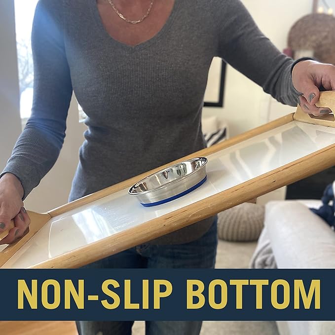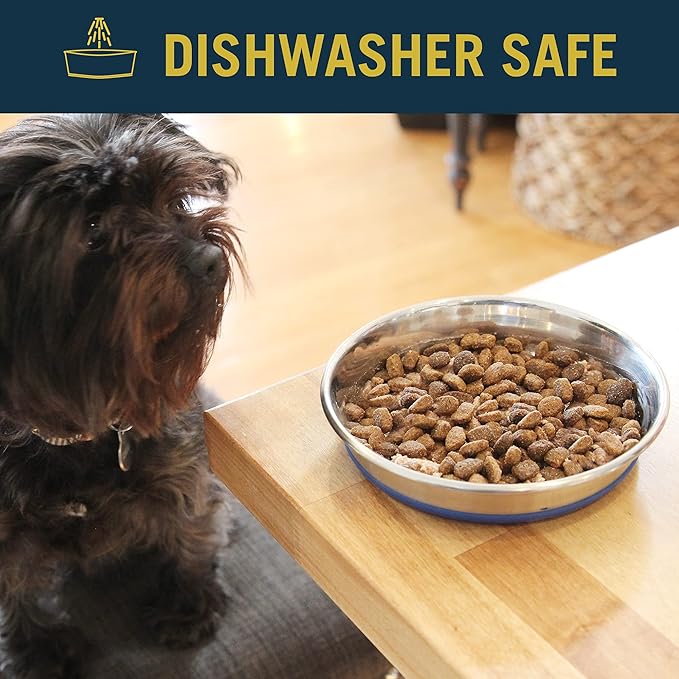 - PATENTED SKID-PROOF BOTTOM: This stainless steel bowl is a top of the line design at an affordable price.To prevent skidding, we added a permanent bonded ring to the bottom; This patented, skid-proof design prevents sliding & tipping during feeding time