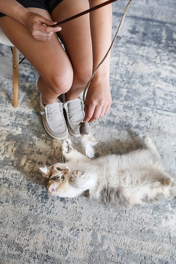 OurPets Play-N-Squeak Teathered & Feathered Play Wand Cat Toy, for All Breed Sizes