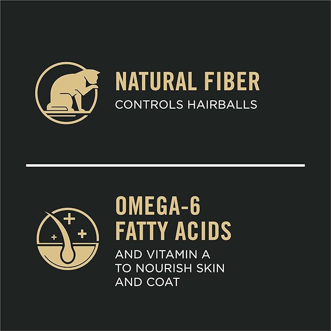 - Natural fiber helps control hairballs. High protein formula, with real chicken as the first ingredient