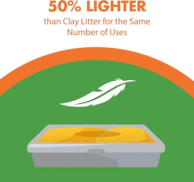 - LOW DUST FORMULA, 50% LIGHTER than traditional clay cat litter. Easy to carry, easy to pour. Natural cat litter with corn fibers, plant extracts, Baking Soda, and mineral oil for dust control. Natural kitty litter with a soft footing cats will love.