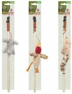 - Toy comes on a wand and string for teasing