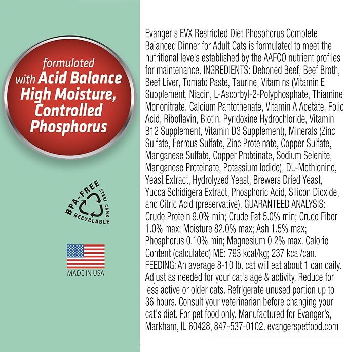 Evanger's EVX Restricted Diet: Phosphorus Canned Cat Food - 24, 5.5 oz Cans