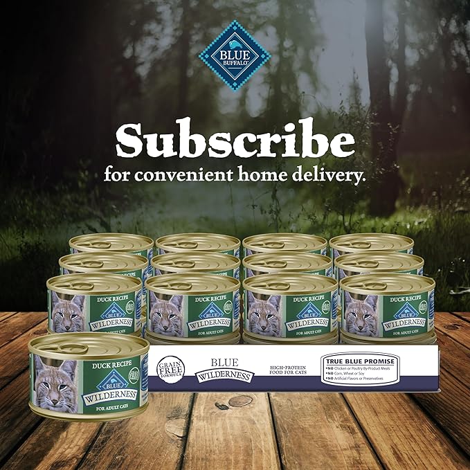 - Contains twenty four (24) 3-oz cans of BLUE Wilderness High Protein Grain Free, Natural Adult Pate Wet Cat Food, Duck