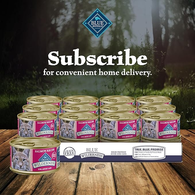 - Contains twenty four (24) 3-oz cans of BLUE Wilderness High Protein Grain Free, Natural Adult Pate Wet Cat Food, Salmon