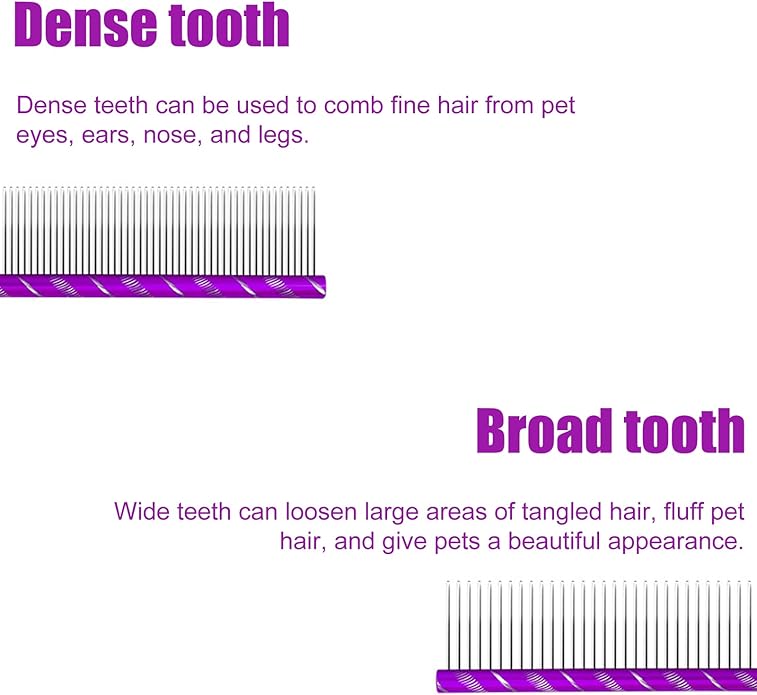 - It can be used to comb the soft hair near the eyes, ears and legs. The sparse part can open the tangled hair and make the hair fluffy. In addition, the ends of the stainless steel teeth are polished and rounded, which will not harm your pet’s skin