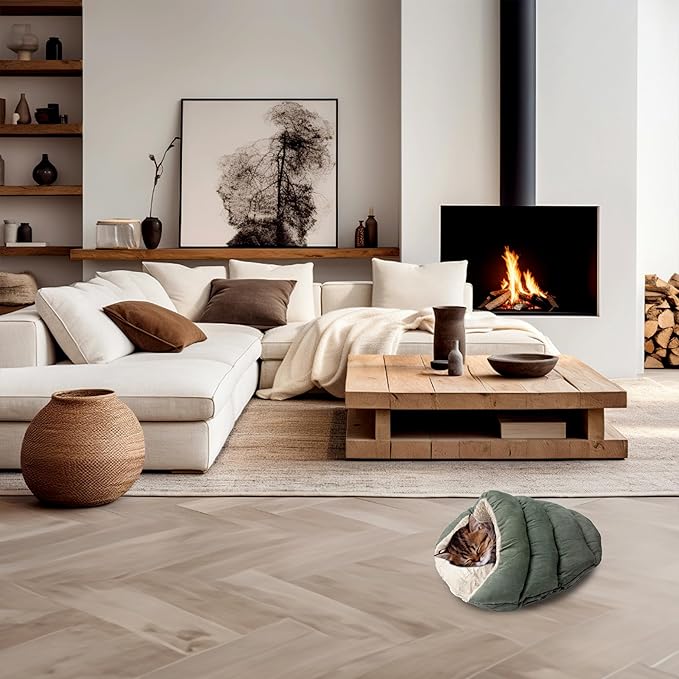 SPOT Sleep Zone Cuddle Cave - Cat Cave Bed for Indoor Cats and Mini Dogs, Durable, Comfortable, Washable for Kittens and Puppies under 10 lbs and 12 inches Long, Sage Color