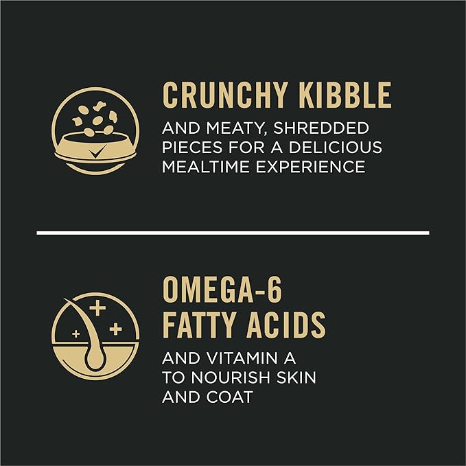 - Crunchy kibble and meaty, shredded pieces for a delicious mealtime experience