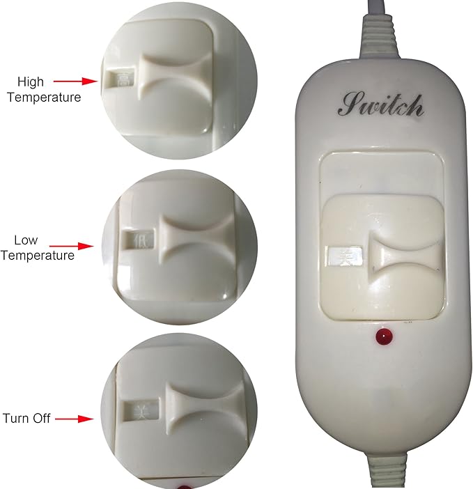 - About controls: Plug it in, have button in the bottom of controller means it stops working; Push button on the top means high heat level(122¨H); Set it in the middle, it means low heat level(86¨H). If any problem after receiving product, please contact us first, we will try our best to address it. Thanks!