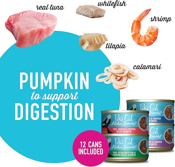 Tiki Cat Aloha Friends Variety Pack, Seafood Flavors with Pumpkin, Wet, High-Protein & High-Moisture Cat Food, For All Life Stages, 3 oz. Cans (Pack of 12)