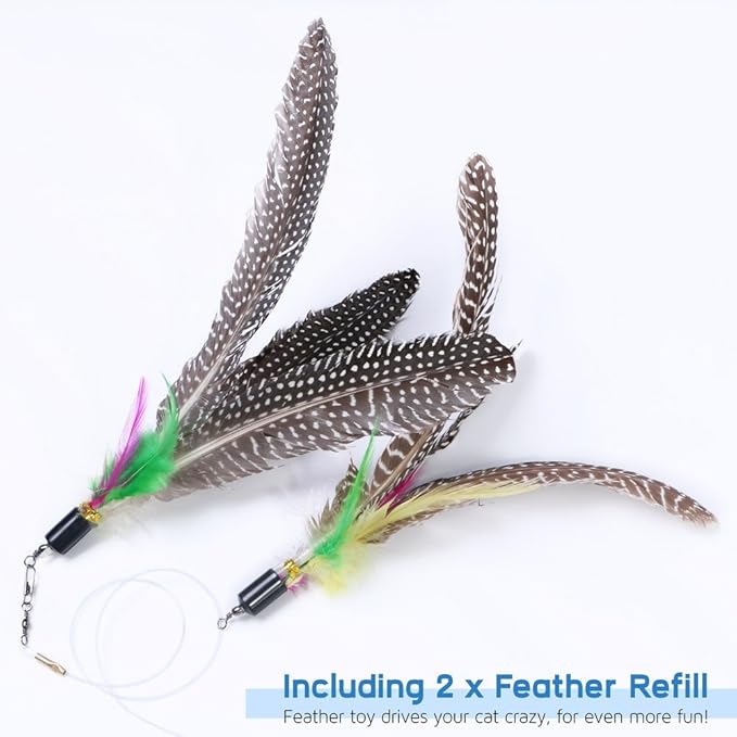 Cat Toys, Feather Wand for Indoor Kitten, 2 Pcs Wild Refill on Retractable Fishing Pole, Interactive Stick Teaser to Exercise - Blue