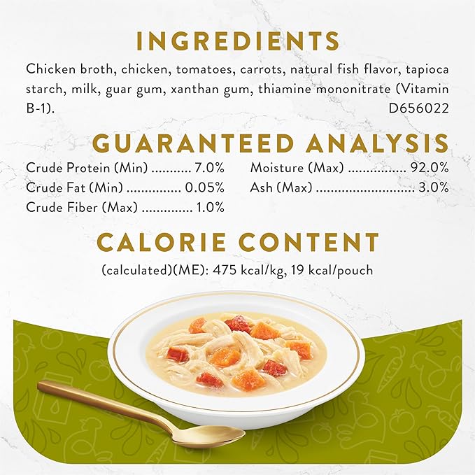 - These high-quality gourmet broth adult cat food toppers are intended as a complement to her complete and balanced diet