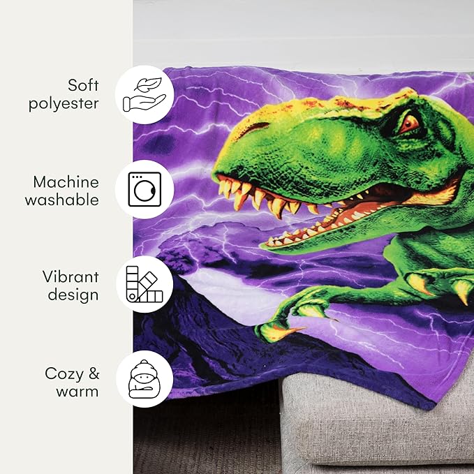 - KIDS DINOSAUR BLANKET: Experience the snuggly softness with our Dinosaur Fleece Blanket. Wrap up in the plush warmth of our durable, elite-quality soft material, featuring a thrilling T-Rex design.