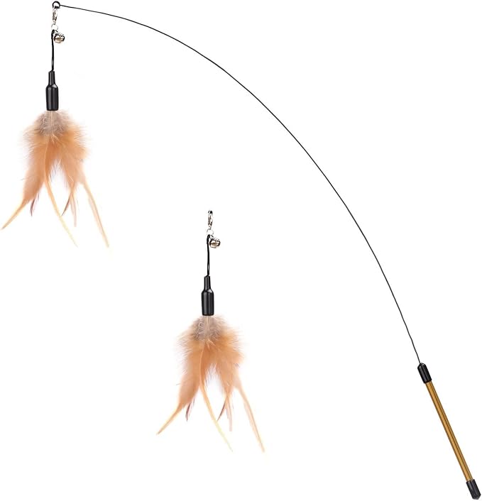 - Colorful nuatural feather and small bell on the tip draw your cat's attention easily and arouse its curiosity. Just gently flick the flexible dangler and enjoy the time with your cat.