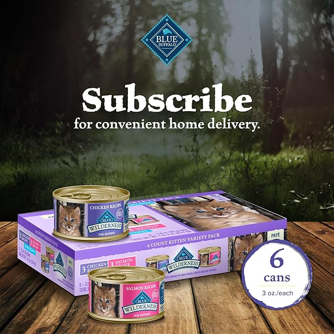 - Contains: Six (6) 3-oz. cans of BLUE Wilderness High-Protein Grain-Free Wet Kitten Food Variety Pack, Chicken & Salmon Recipe