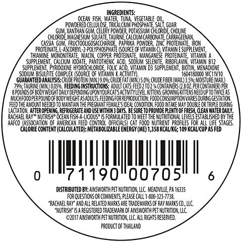 Rachael Ray Nutrish Natural Wet Cat Food with Added Vitamins, Minerals & Taurine, Ocean Fish-A-Licious Recipe, 2.8 Ounce Cup (Pack of 12), Grain Free