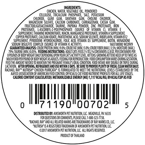 Rachael Ray Nutrish Natural Wet Cat Food with Added Vitamins, Minerals & Taurine, Chicken Purrcata Recipe, 2.8 Ounce Cup (Pack of 12), Grain Free