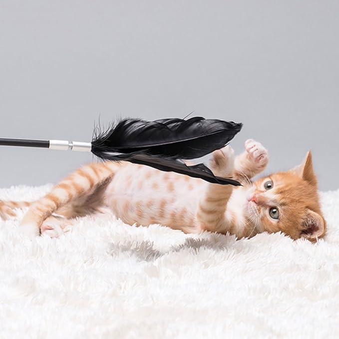 - Superior quality and design: Not your average cat toy, a hand-picked goose feather water-dyed with natural non-toxic color, aluminum alloy connection parts, durable tpv and tpc body parts give the toy a solid support for longer fun