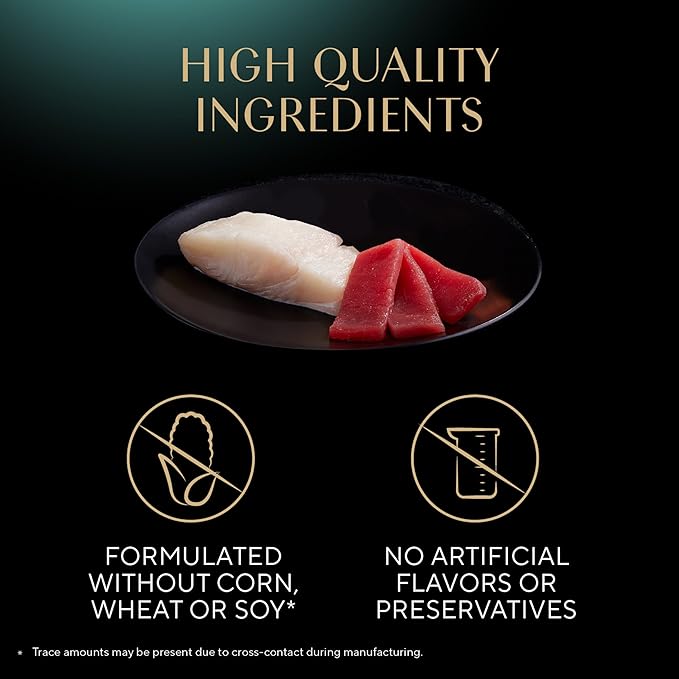 - Delicious Recipe: Sheba Perfect Portions Wet Cat Food Cuts in Gravy is formulated without grains, corn, or soy and contains no artificial flavors or preservatives; although trace amounts may be present due to cross-contact during manufacturing