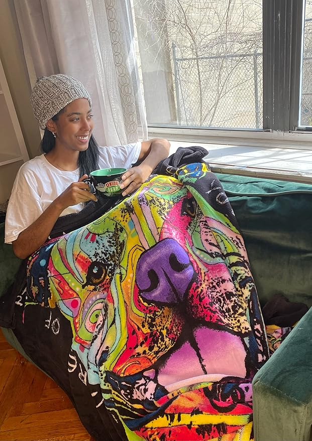 - Eye-Catching Design: Features a vibrant and colorful Dean Russo design, making this blanket with dogs on it a standout addition to home pitbull decor or a thoughtful gift for dog enthusiasts