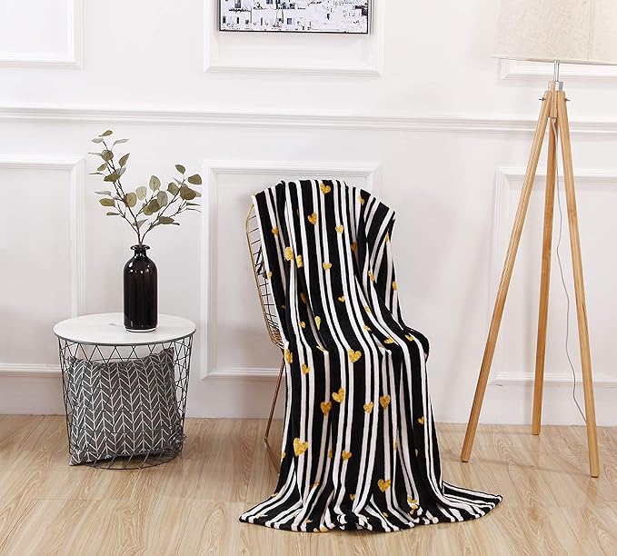 Elegant Comfort Velvet Touch Ultra Plush Christmas Holiday Printed Fleece Throw/Blanket-50 x 60inch, (Golden Heart)