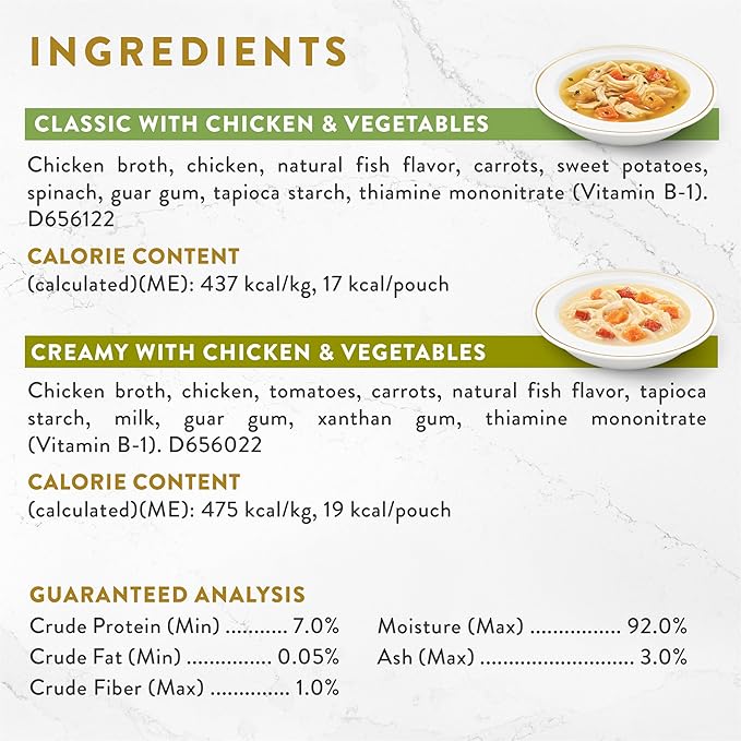 - Premium adult cat food toppers made with real chicken and vegetables in a savory broth for a delicious taste cats love