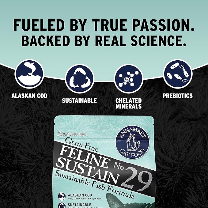 Annamaet Grain-Free Feline Sustain No. 29 Formula Dry Cat Food, (Line-Caught Cod & Free-Range Turkey), 12-lb Bag