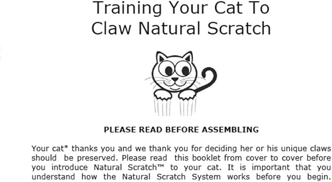 - Easy-to-read-and-use training booklet. Offer your cat's favorite treat as a reward and use the included method to train her or him to claw Natural Scratch and nothing else.