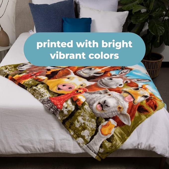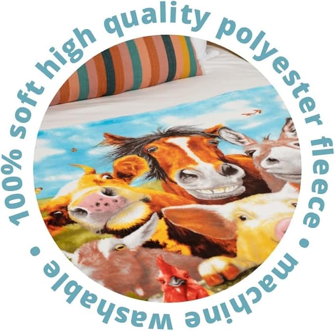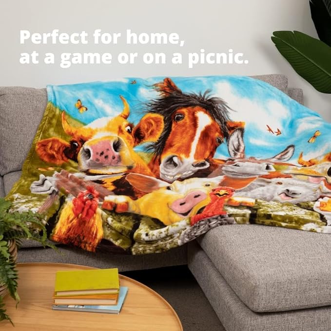 - Eye-Catching Design: Features a vibrant farm animals selfie design with bright colors; this farm animal blanket is ideal for animal lovers, adding a playful touch to any living space