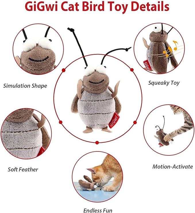 Gigwi Interactive Cricket Cat Toy, Automatic Cricket Squeaky Cat Toys, Play and Squeak Electronic Cricket Toy for Cats Kitten Indoor
