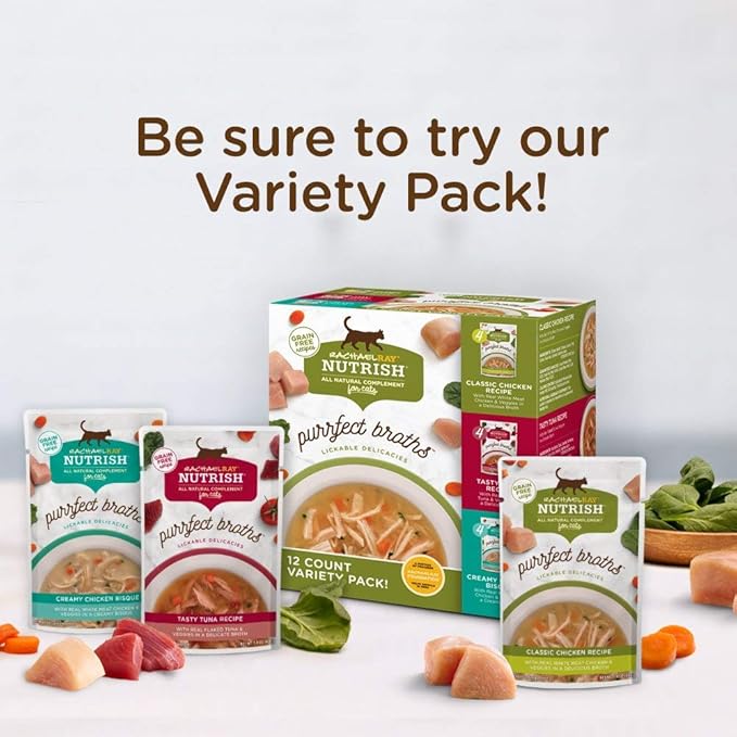 Nutrish Rachael Ray Purrfect Broths Wet Cat Food, Classic Chicken Recipe with White Meat Chicken & Veggies, 1.4 Ounce Pouch (Pack of 24), Grain Free