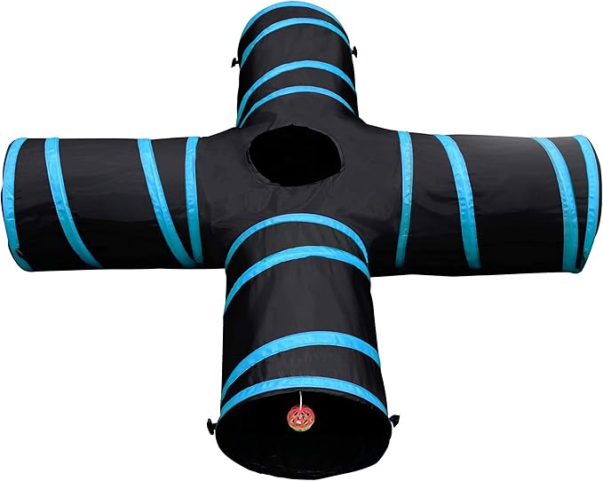 - Tunnel of Fun: Our cat playground features crackle paper, a cat ball toy, four 26 in connected tunnels and a peephole giving your cat plenty of entertainment. Suitable for other smaller pets as well