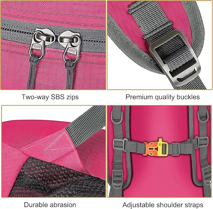 - 35Litre Large Capacity: Our 35l foldable backpack features 2 compartments and 1 inner separator in the main compartment keep your things assorted and organized; 1 inner zipper slip pocket for small wallet, passport, ID card and driver license,etc valuables; 2 front zipper pockets for quick access; 2 side water bottle pockets with bungee for water bottles,umbrella and sunglasses.