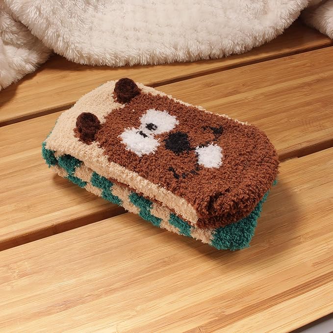 - ANIMAL FUZZY COZY CREW SOCKS Women's Super Soft Warm Microfiber Fuzzy Cozy Animal Socks, 01 Beaver - 3 Pairs Value Pack