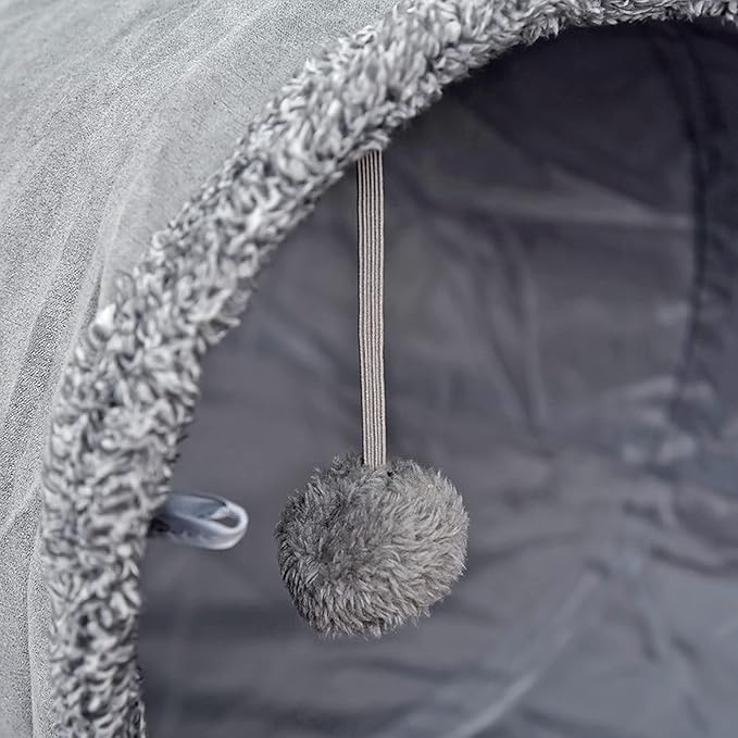 - 🐱Funny Design: Our cat play tunnel comes with peak hole design, your cat can extend its head and observe the outside, which makes it an excellent place to hide and track. The hanging ball equipped with this cat play tunnel at the entrance adds more entertainment methods, also suitable for two or three cats play together.