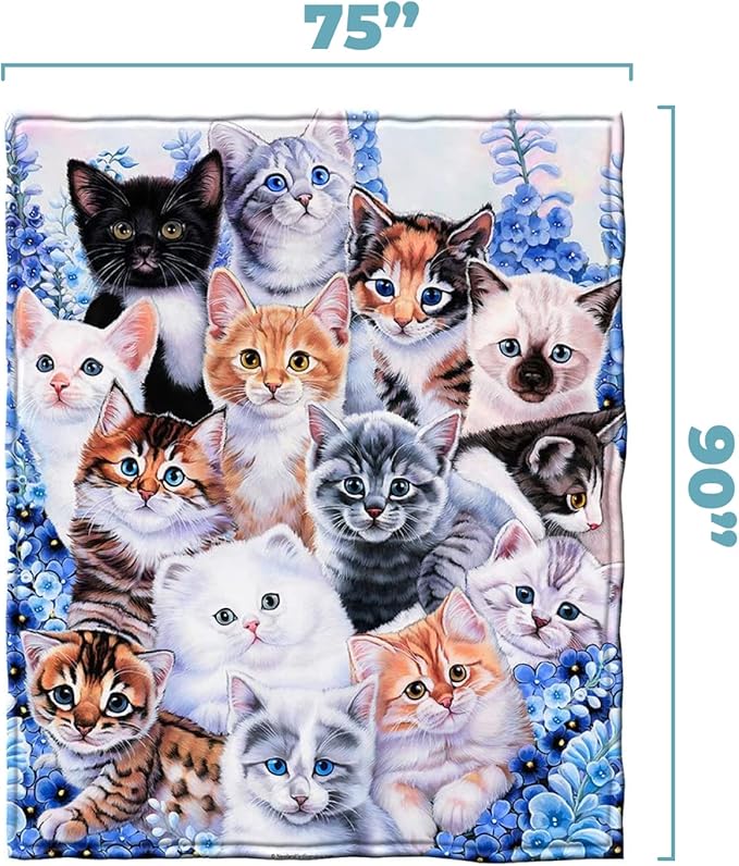 Dawhud Direct Collage Kitten Fleece Blanket for Bed, 75" x 90" Queen Size Cute Fleece Throw Blankets for Girls, Women, Men and Kids - Super Soft Plush Cat Blanket Throw