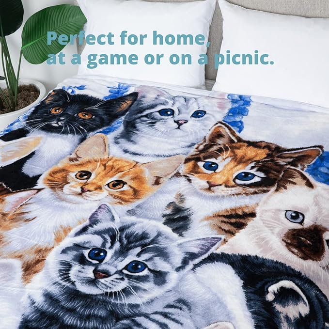 - The Jenny Newland Kitten Collage Fleece Blanket - This super soft, warm and cozy, plush Cat blanket is exceptionally durable. Snuggle up and keep warm with our eye catching Cat design!