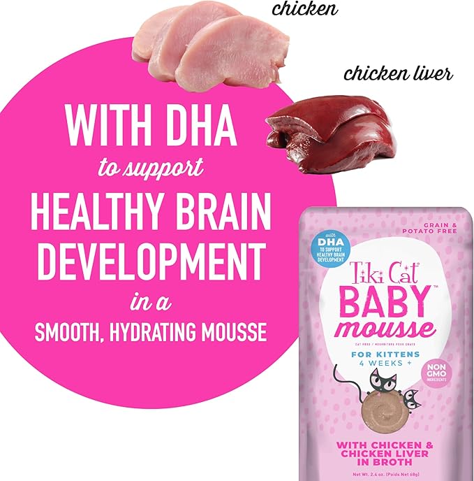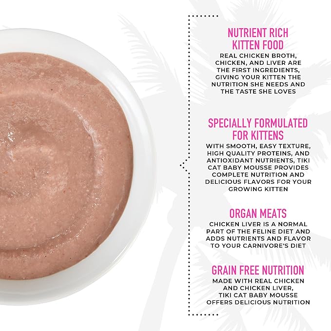 - GRAIN FREE NUTRITION – Made with real chicken and chicken liver, Tiki Cat Baby Mousse offers delicious nutrition