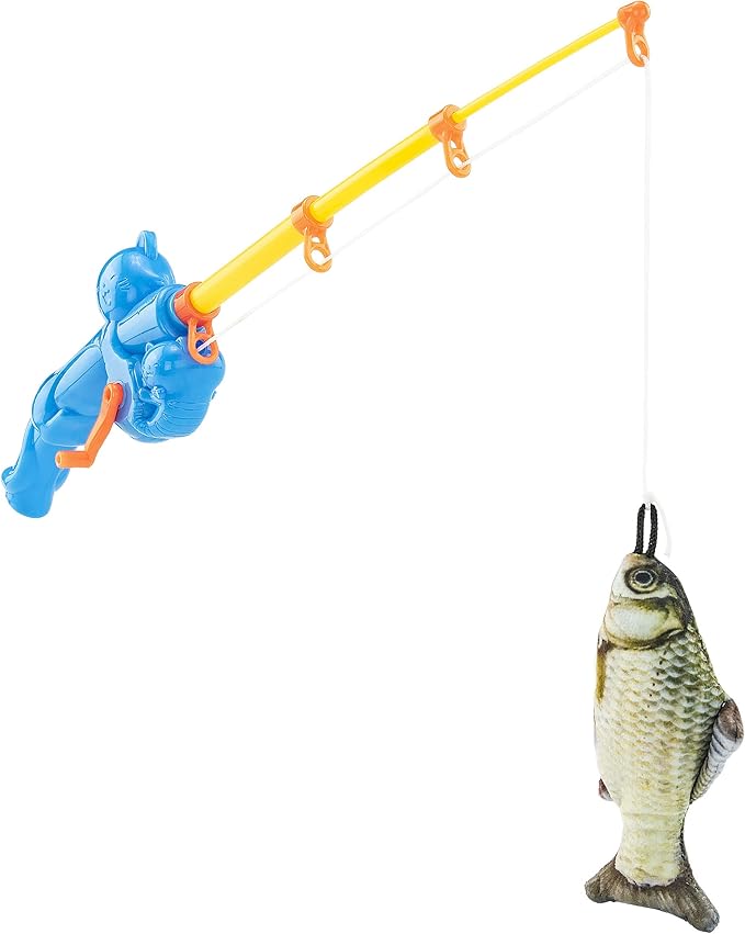 - REEL IN EXCITEMENT!: Your kitties are gonna flip, pounce, catch, and scratch for hours over this Cat Fishing Pole Toy. Get that camera ready, this Fishing Pole Cat Toy will provide hours of Funny Cat fun