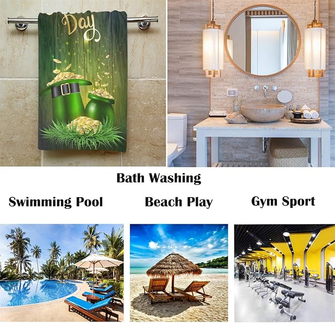 St. Patrick's Day Extra Large Hand Towels Golden Coins Leprechaun Hat Pot Wooden Bath Towel Ultra Soft Highly Absorbent Multipurpose Bathroom Towel for Hand,Face,Gym and Spa Hoilday Decor,16x30 in