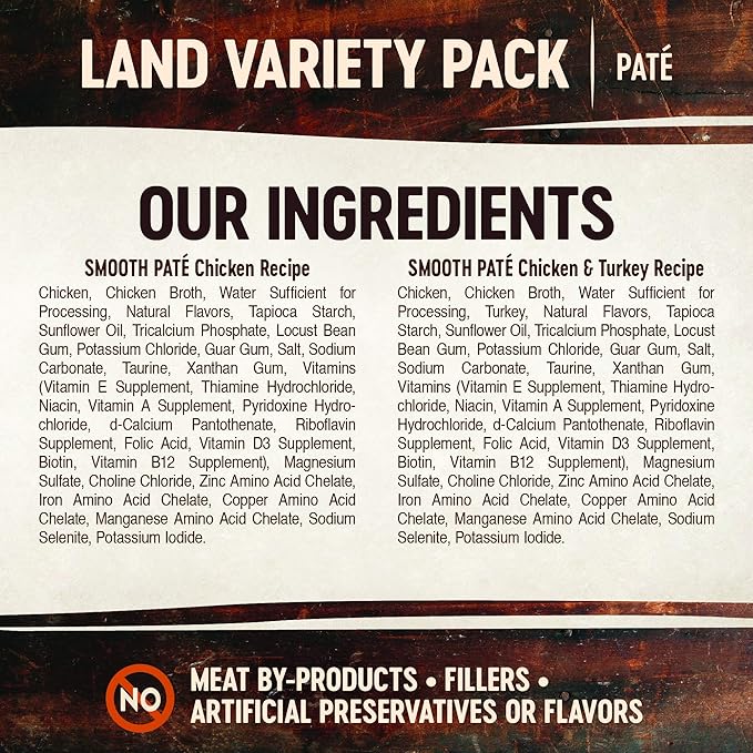 - POULTRY VARIETY PACK: Includes two wet cat food flavors with real protein as the first ingredient: Chicken Pate and Turkey Pate. Pate is completely smooth for an irresistible taste your cat will love.