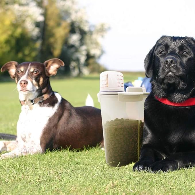 - ★WONDERFUL SPOUT and MEASURING CUP: the Measuring Cup with a scale which can easily keep on your pets steady diet by measuring same amount and not over feeding. If you are not worried about giving your animal exactly one cup or half cup of food you can simply use the spout