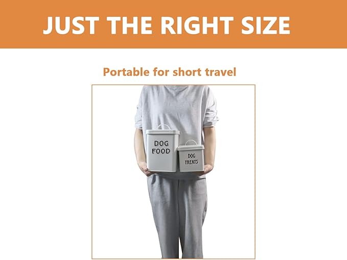 - 3.TIGHT FITTING LIDS - The side handles on the larger "dog food" container make it easy to transport - while the smaller "dog treats" container is small enough to carry with ease, but can fit quite a bunch of those treats your pet goes crazy for!