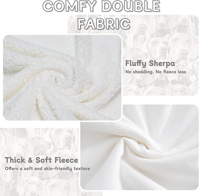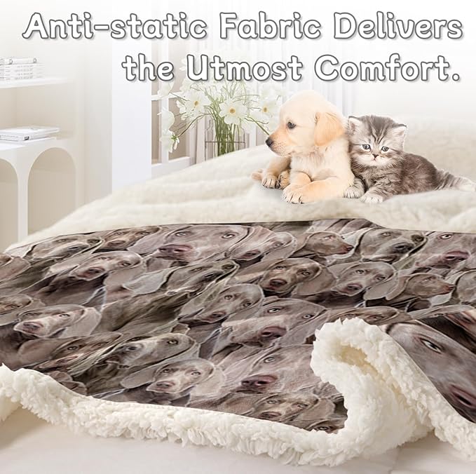 BlessLiving Fuzzy Dog Blanket for Kids Adults Puppy Lovey Fleece Blanket Reversible Animal Pattern Sherpa Throw (Weimaraner, 60 x 80 Inches)