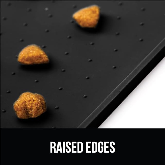 GORILLA GRIP 100% Waterproof Raised Edge BPA Free Silicone Pet Feeding Mat, Dog Cat Food Mats Contain Spills Protects Floors, Placemats for Cats and Dogs Water Bowl, Pets Accessories 18.5x11.5 Black