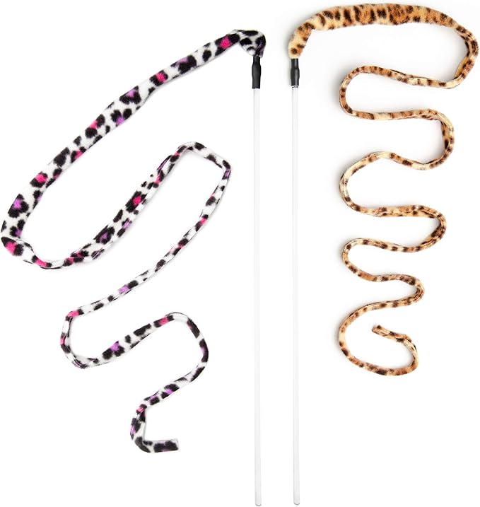 - PREMIUM QUALITY: The cat wand toy is made from a plastic rod and jungle print fleece Both materials are non-toxic and safe for your cats