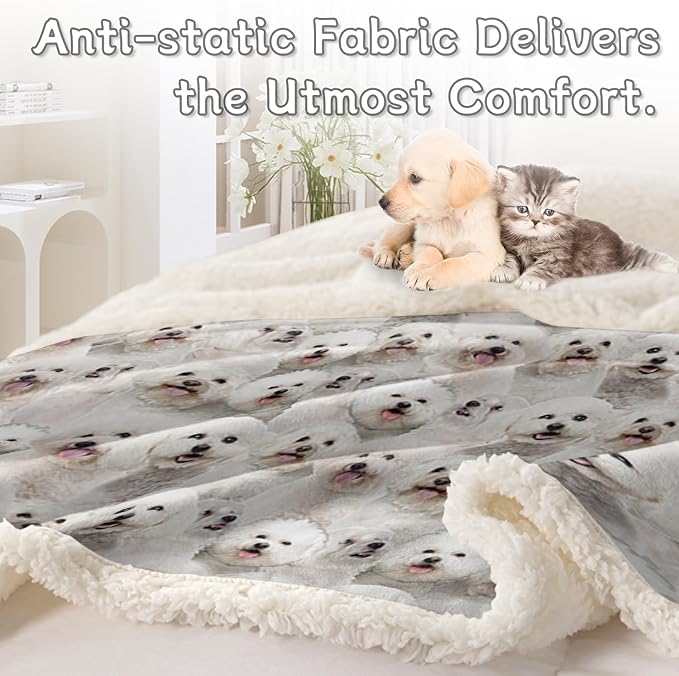 BlessLiving Bichon Frise Sherpa Fleece Throw Blanket 60" x 80" Soft Fluffy Warm Cozy Dogs Blanket for Couch Bed Sofa Chair Cute Puppy Fleece Blanket Reversible Animal Pattern Blankets Gifts for Women