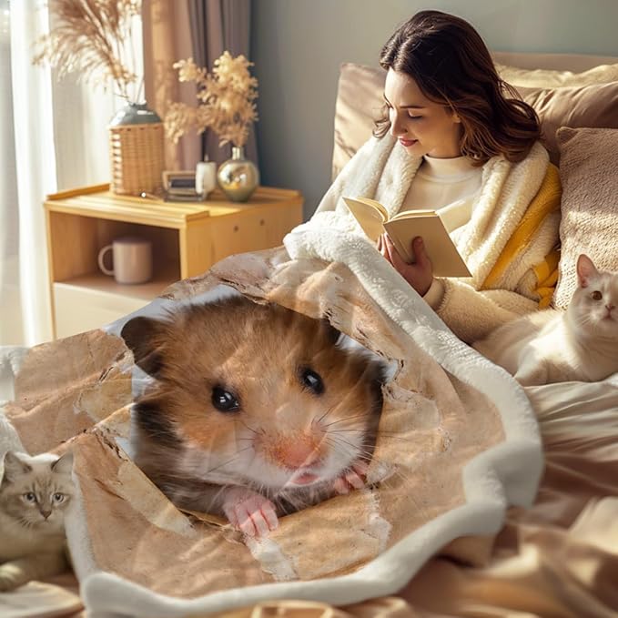 - ✔DESIGN: Fun and adorable fun hamster for your home decorative blankets.