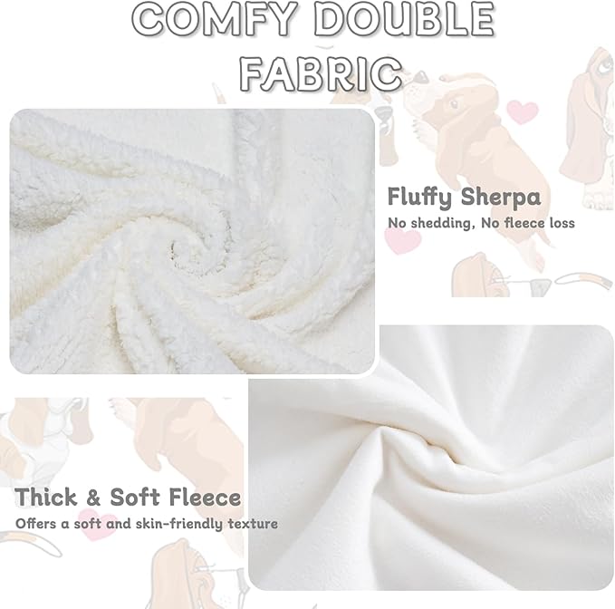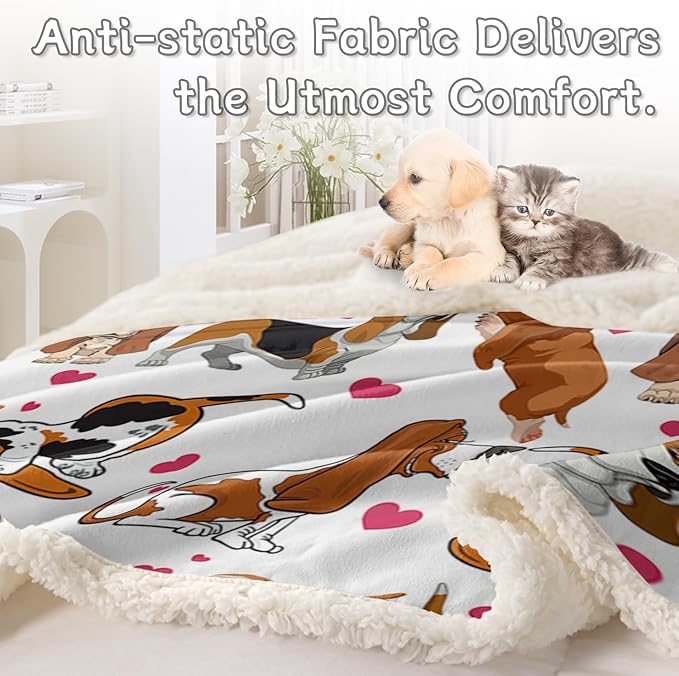 BlessLiving Red Hearts Dog Print Sherpa Plush Blanket Cute Puppy for Kids Adults 3D Animal Print Lightweight Blanket Bassett Hound Gifts Gift for Pet Lovers (Basset Hound,Twin, 60 x 80 Inches)
